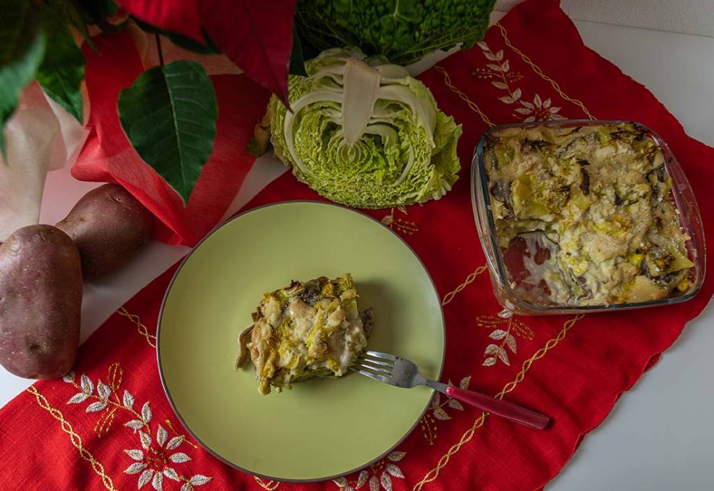 Lasagna di grano saraceno con verza e patate