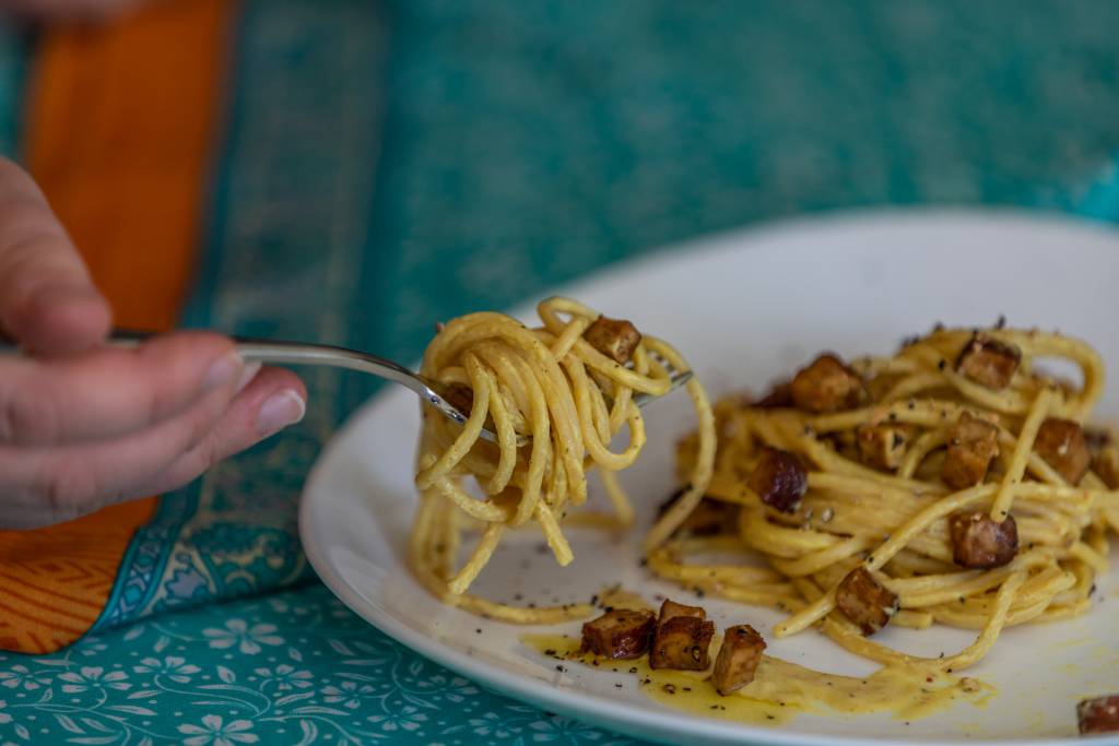 Questa è la rivisitazione vegana di una pasta della tradizione romana.